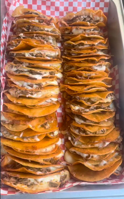 And let’s not even get started on the quesabirrias—crispy, crunchy, cheesy corn tortillas filled with our famous beef birria (braised beef), slow-cooked for six hours in a special blend of spices. We separate the broth from the meat and serve it in small cups—this is our heartwarming consommé, perfect for dipping or sipping. The quesabirrias are our signature item and always the party favorite.